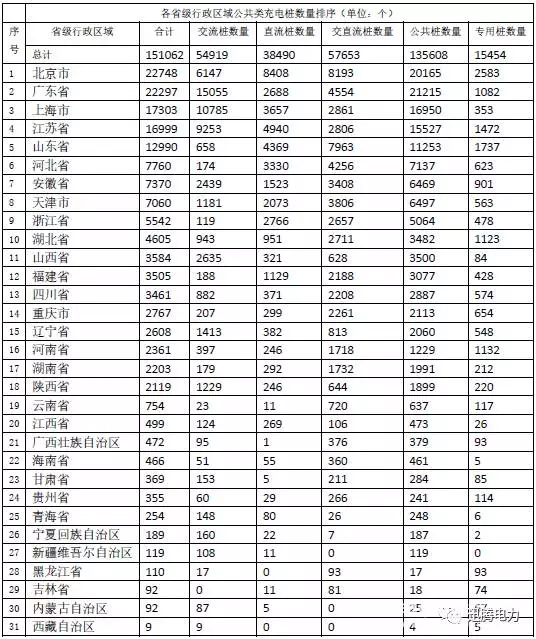 最新數據|各省市充電樁數量統計分